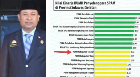 Tahun 2017, Perusahaan Daerah Air Minum (PDAM) Takalar masuk peringkat 2 dan mengalami penurunan atau nilai kurang sehat di tahun