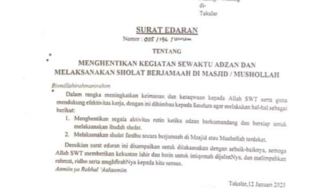 Read MoreTAKALAR – Surat Edaran Bupati tentang menghentikan kegiatan sewaktu Adzan dan melakukan shalat berjamaah di Masjid atau Mushollah ternyata tidak