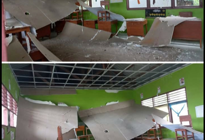 Diduga Gagal Kontruksi, Plafon Ruangan SDN Jonggoa Cikoang Runtuh