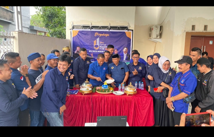 Sedikitnya, sekitar 70 orang memadati prosesi pelaksanaan HUT sembari nonton bareng (Nobar) HUT Partai Nasdem pusat ke 11.