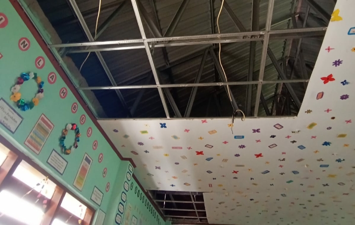 Kepsek setempat yang dihubungi membenarkan adanya kejadian runtuhnya plafon yang belum lama usai dikerjakan.
