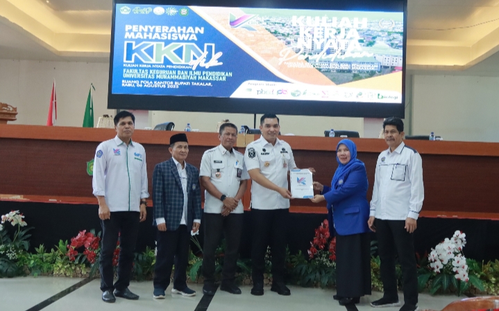 Penyerahan mahasiswa KKN ditandai dengan penyerahan SK nama-nama peserta KKN dari Wakil Rektor II DR. Hj. Ihyani Malik M.Si kepada Sekretaris Daerah Kab. Takalar Dr. Muhammad Hasbi,.S.STP,.M.AP,.M.IKom di Ruang Pola Kantor Bupati Takalar, Rabu 6 Agustus 2025.