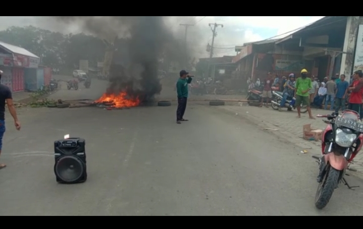 Aksi bakar ban yang dilakukan warga Banggae hari ini terpaksa merubah jalur kendaraan baik dari atlrah Makassar maupun dari arah Je,neponto.